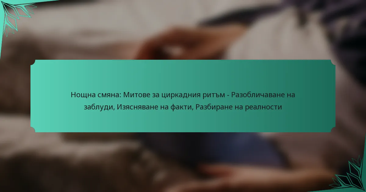 Работата на нощна смяна често е обгърната от заблуди, които могат да повлияят както на качеството на съня, така и на общото здраве. Чрез опровергаване на тези митове и изясняване на реалностите на циркадните ритми, работещите на нощна смяна могат по-добре да се справят с предизвикателствата, пред които са изправени. Разбирането на важността на хигиената на съня, експозицията на светлина и времето за хранене е от съществено значение за поддържане на благосъстоянието, докато се адаптират към нетрадиционен график.
