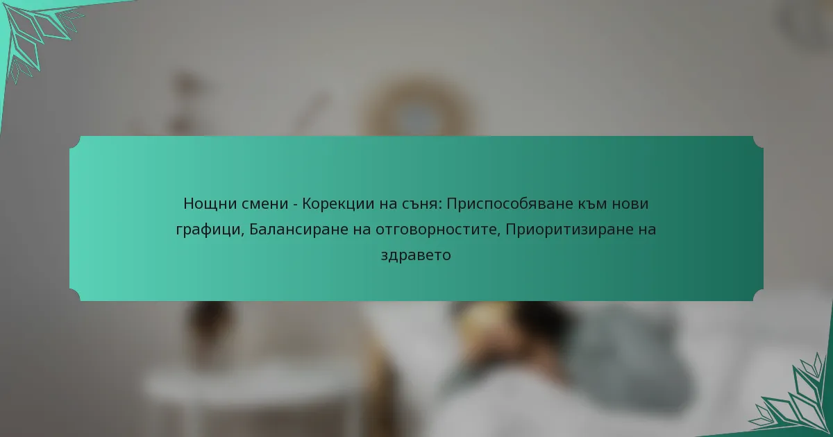 Приспособяването на графиците за сън за нощни смени включва създаването на подкрепяща среда, установяване на рутини и разбиране на биологичните ритми. Ефективните стратегии могат да помогнат за подобряване на качеството на съня и общото благосъстояние, улеснявайки баланса между работа и лични отговорности.
