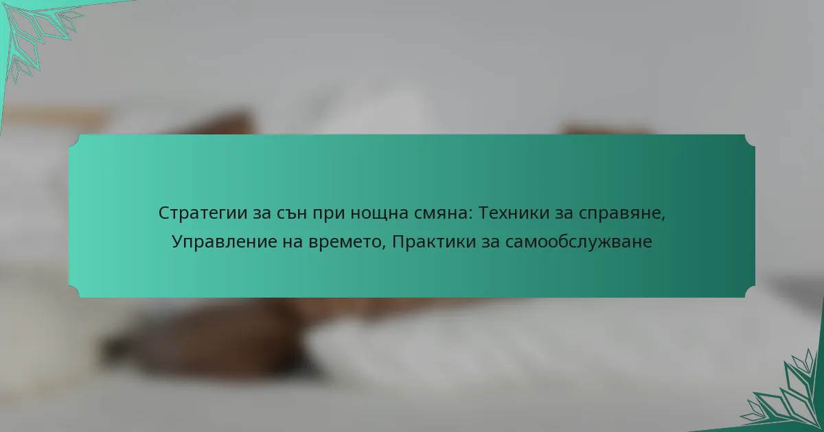 Управлението на стреса е от съществено значение за работещите на нощна смяна, тъй като неравномерните часове могат да доведат до увеличена тревожност и умора. Прилагането на ефективни техники може да помогне за поддържане на психичното благосъстояние.