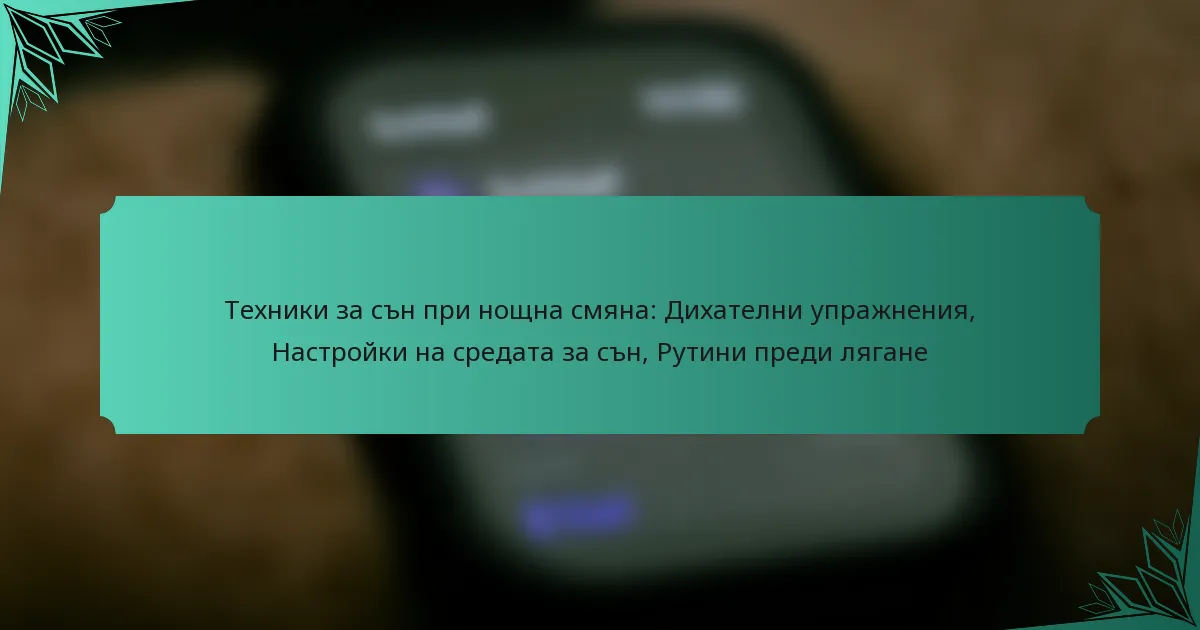 За работещите на нощни смени, постигането на качествен сън може да бъде предизвикателство, но прилагането на ефективни техники може да направи значителна разлика. Дихателни упражнения, корекции на средата за сън и структурирани рутинни навици преди лягане са основни стратегии, които насърчават релаксацията и сигнализират на тялото да почива. Като се фокусират върху тези области, индивидите могат да подобрят общото качество на съня и благосъстоянието си.